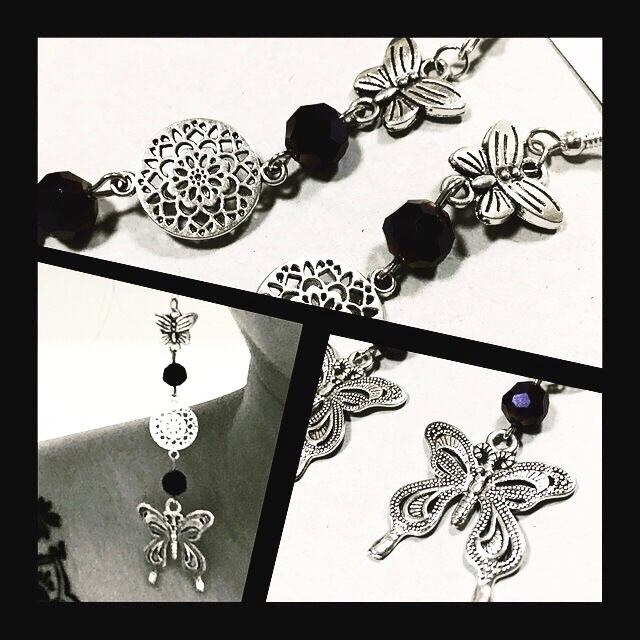 【紫と舞う揚羽蝶のピアス イヤリング。】