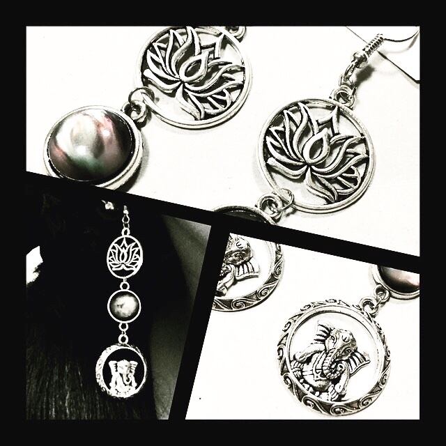 【蓮と心経の暗闇ストーンなピアス イヤリング。】