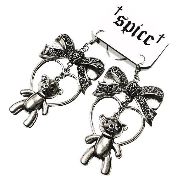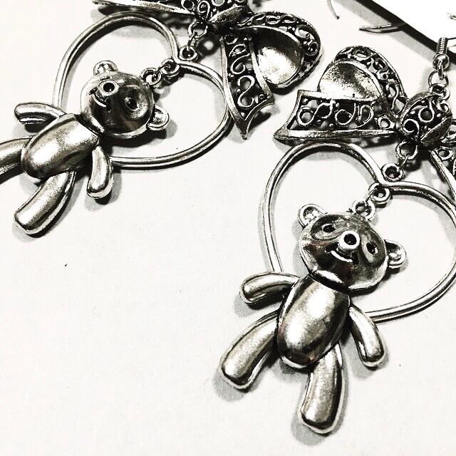 再販【BIGなテディ&リボンのアンティークなピアス イヤリング。】