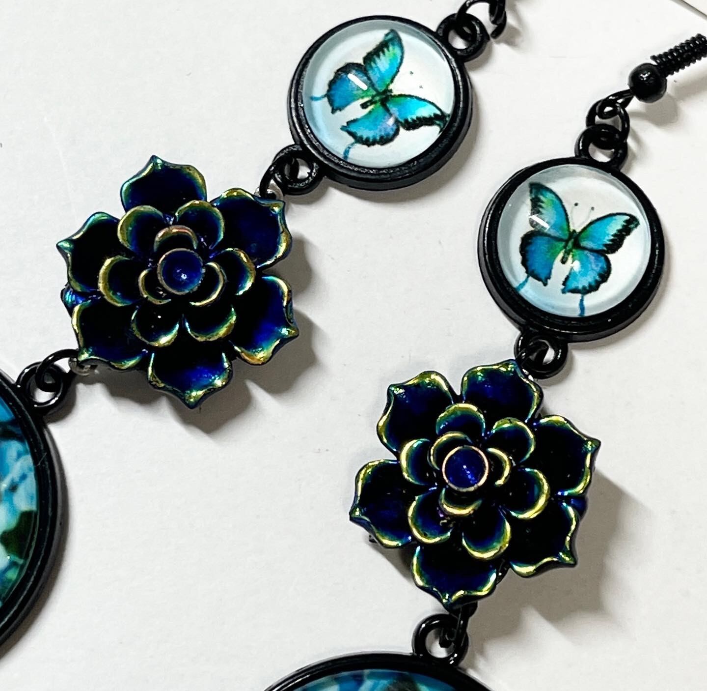 再販【暗闇ネオンに舞う揚羽蝶のピアス イヤリング。】