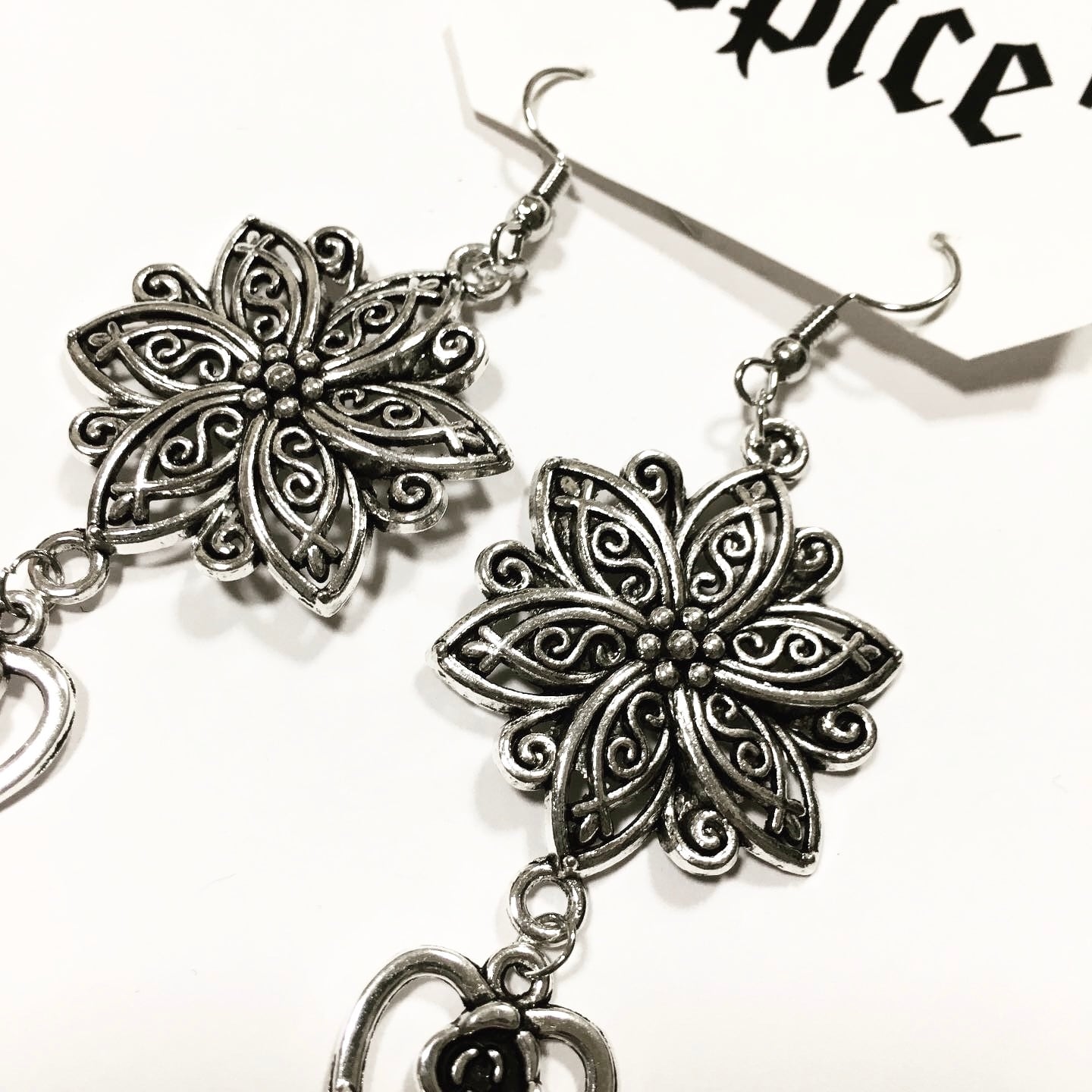 【アンティークフラワーと心の薔薇なピアス イヤリング。】