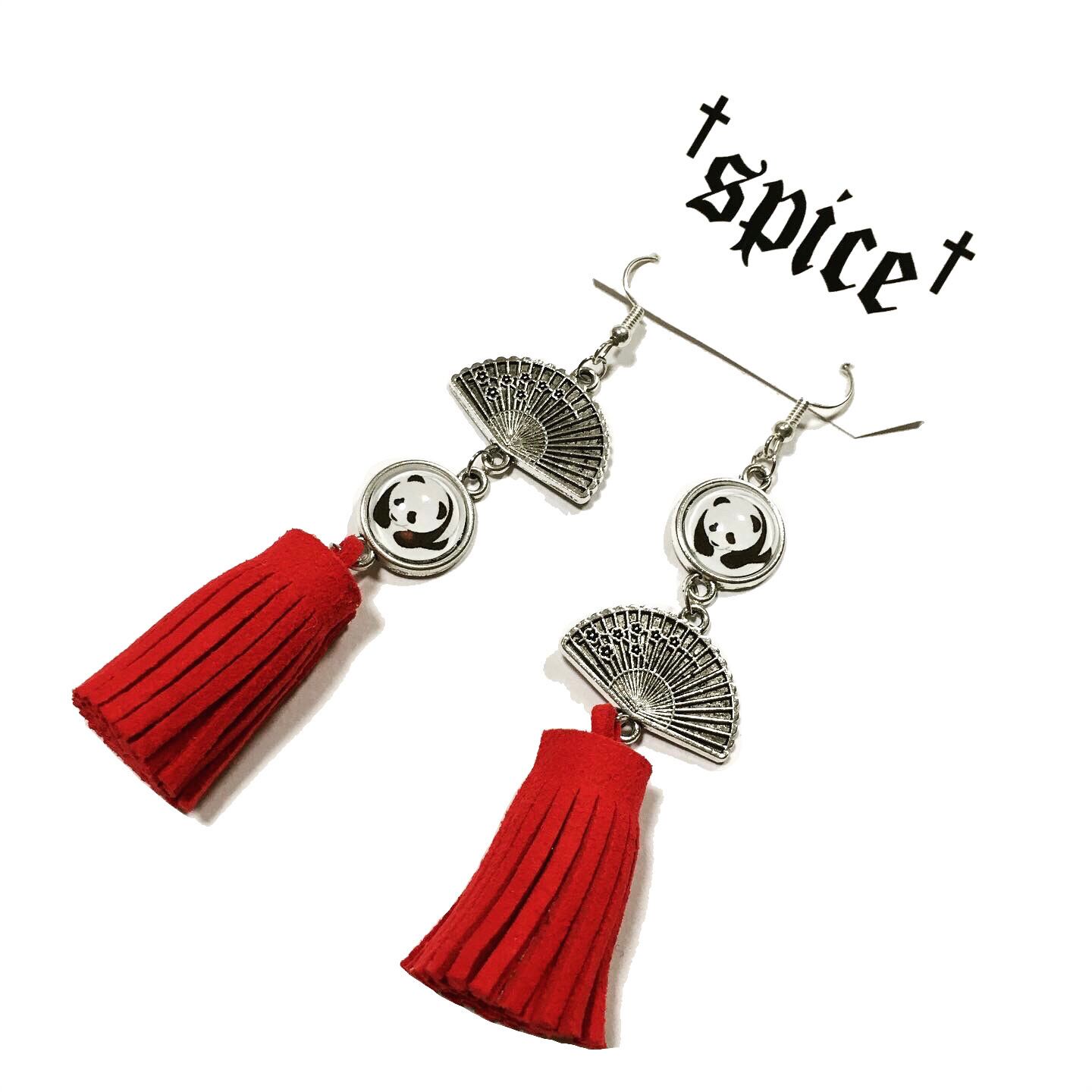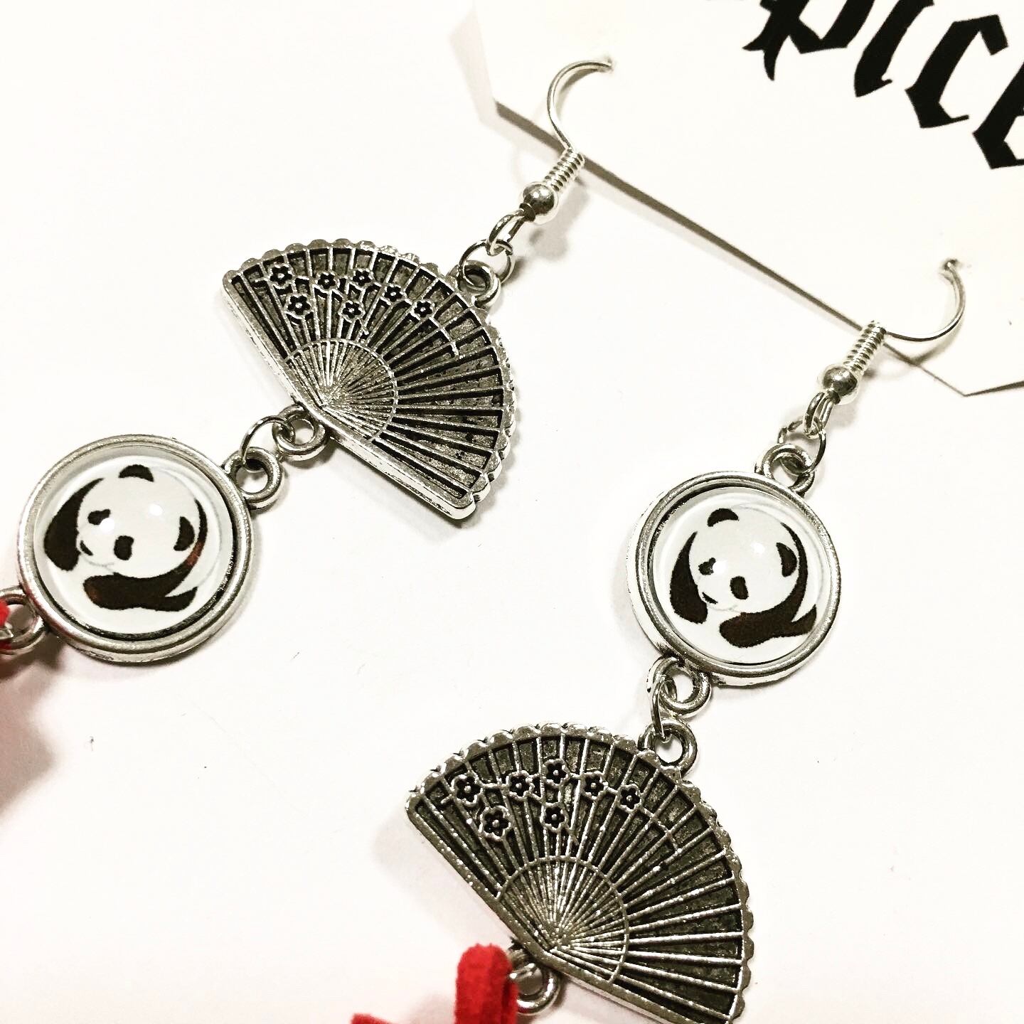 再販【中華パンダと扇子のタッセルなピアス イヤリング。】