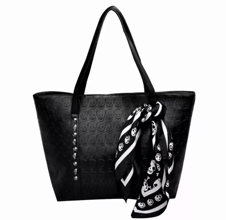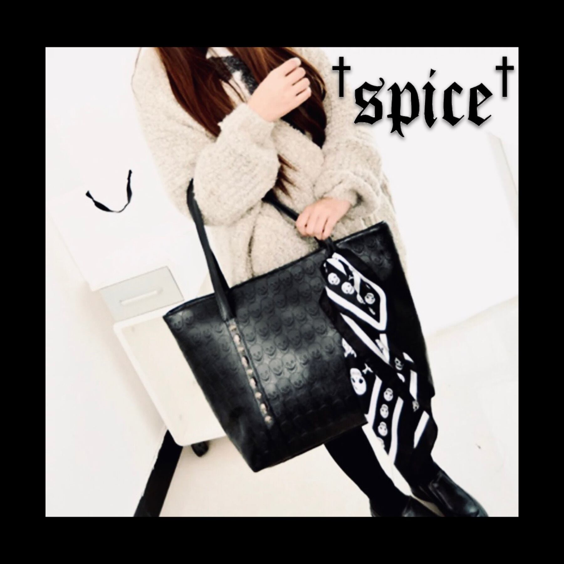 【KATAOSHI@studs_skull_leather+scarf トートバッグ。】