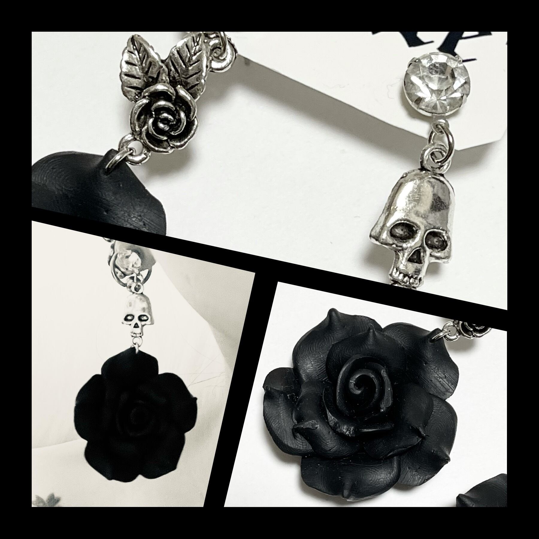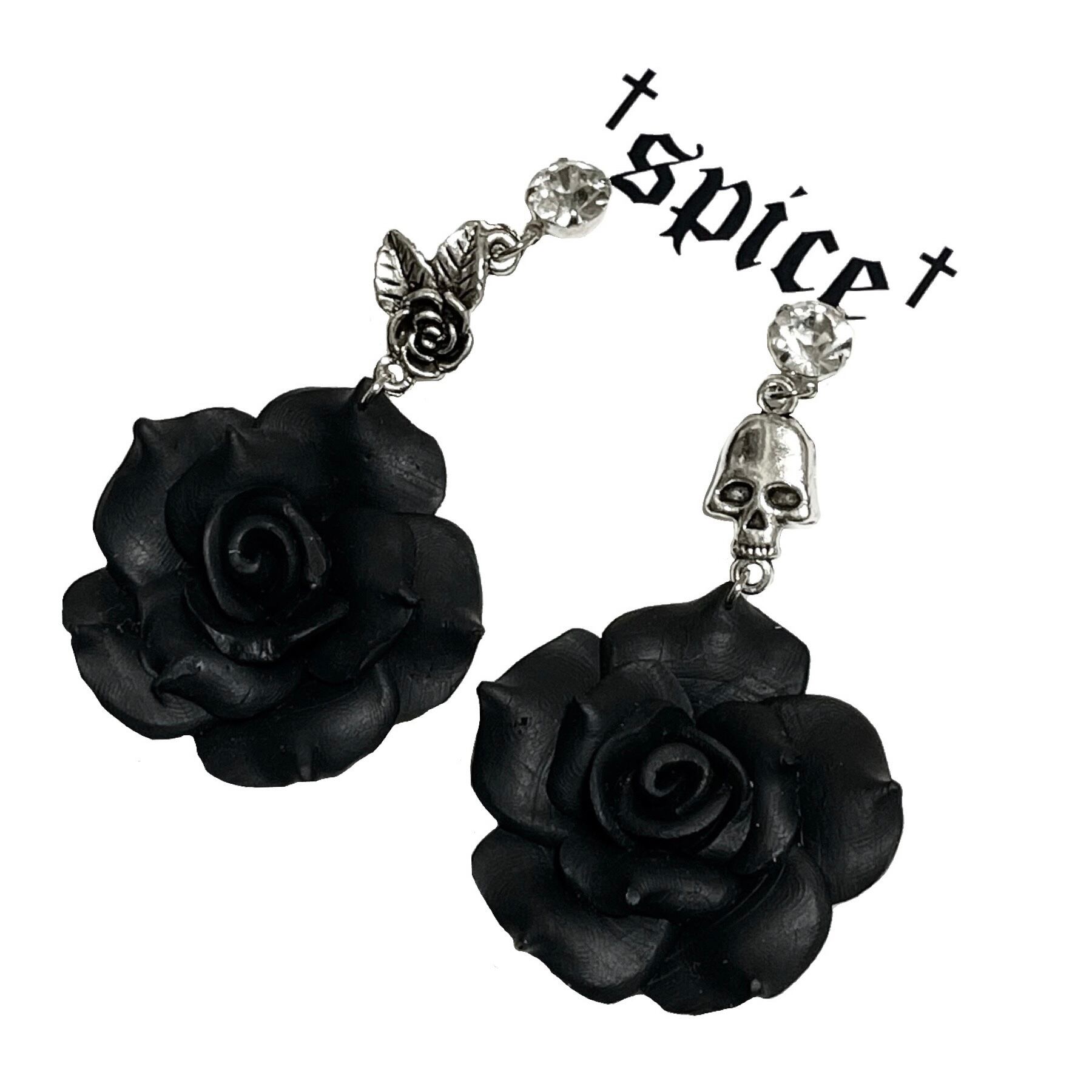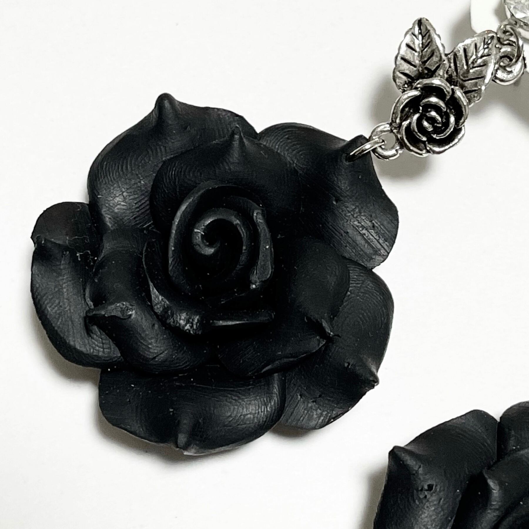 再販【黒薔薇の闇アシメトリーなピアス イヤリング。】
