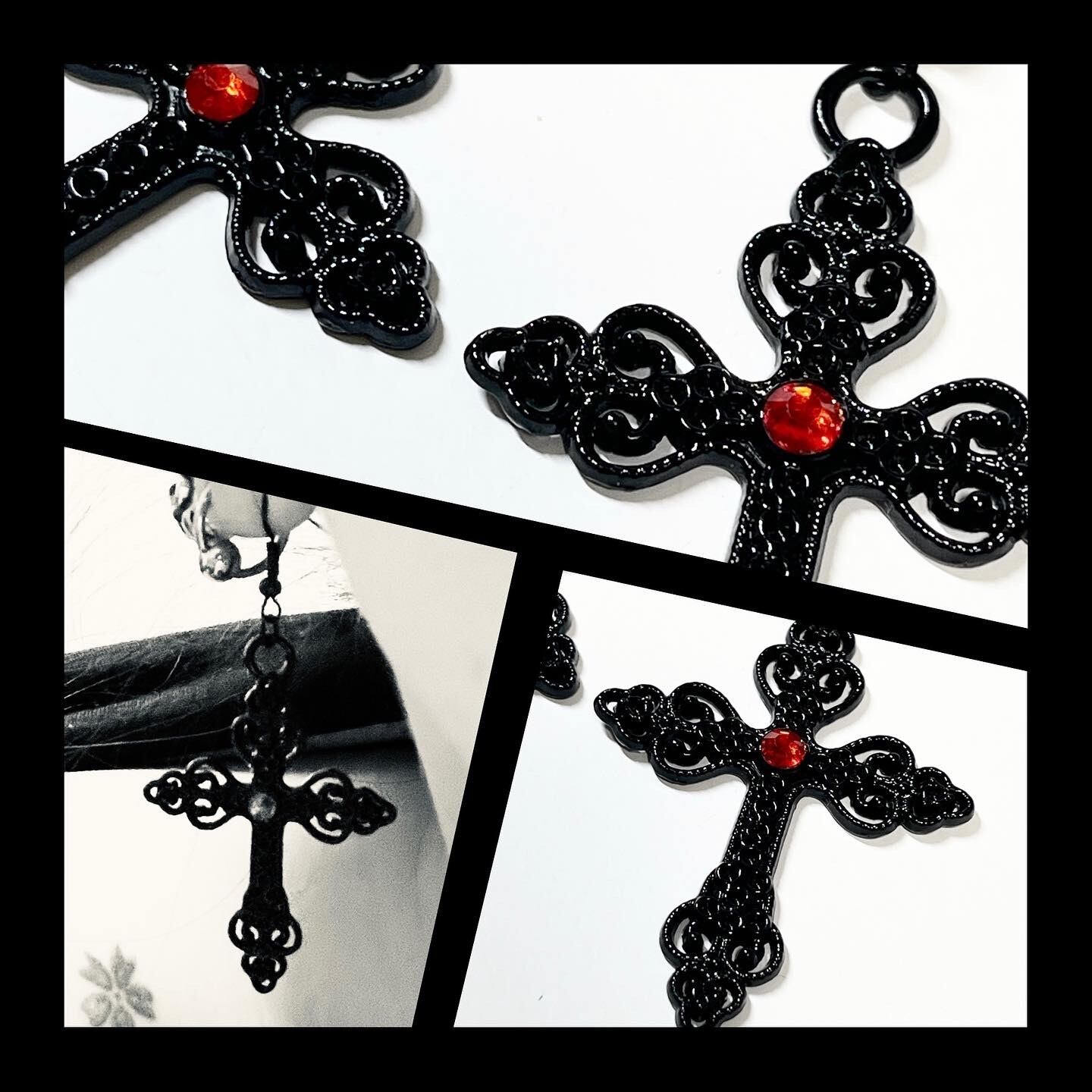 再販【紅く輝く暗闇十字架なピアス イヤリング。】