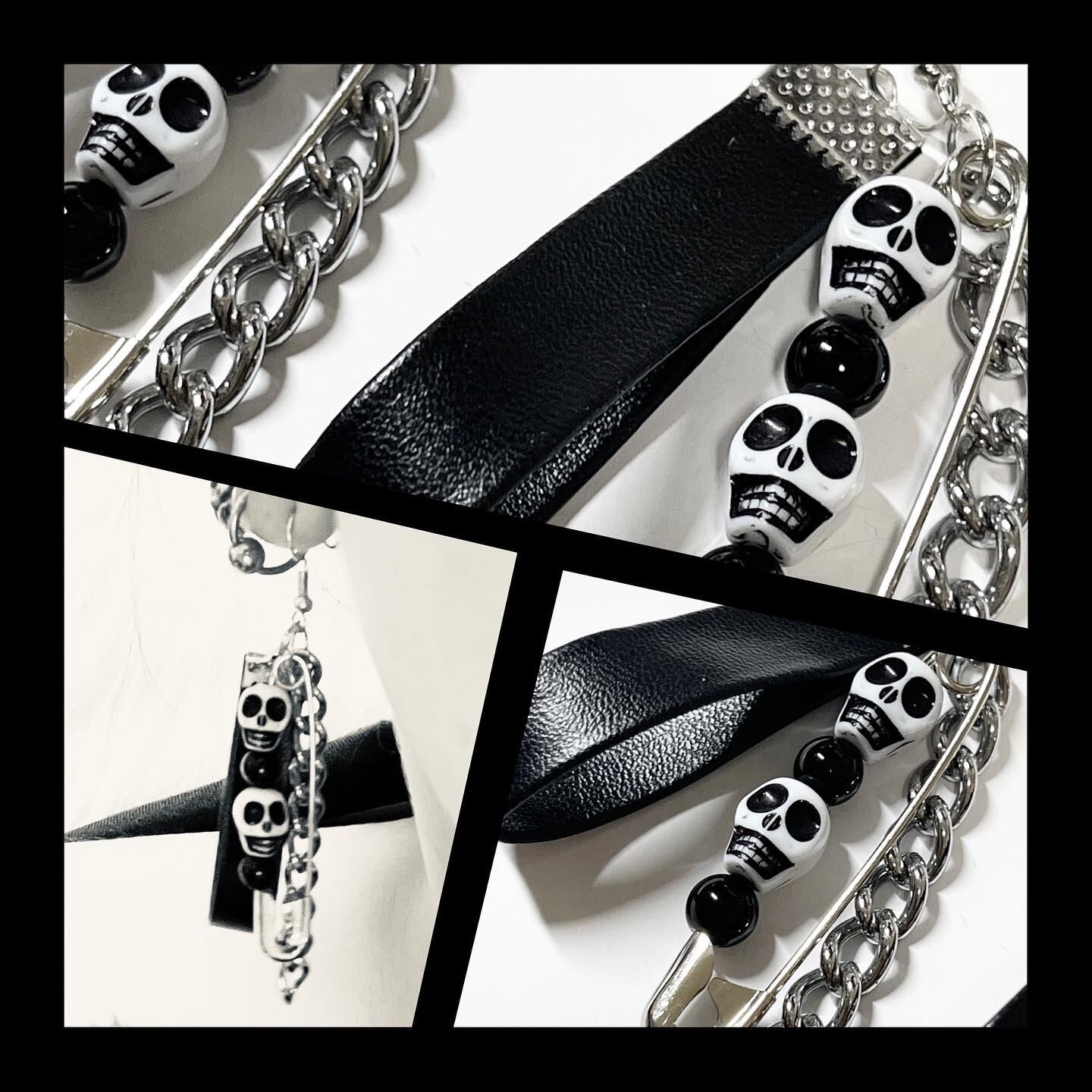 【スカルのじゃらじゃら安全ピンなピアス イヤリング。】