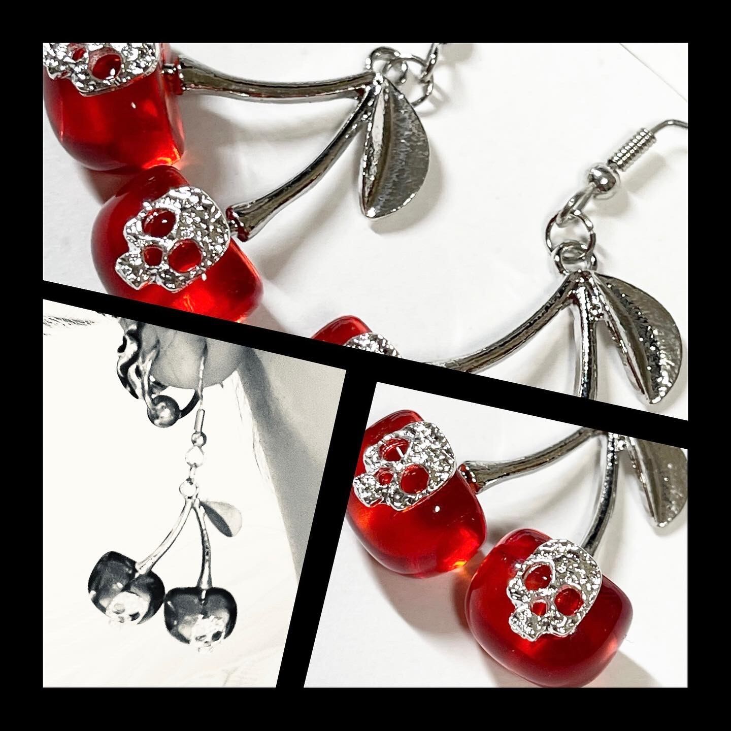 再販【スカルなチェリーレッドのピアス イヤリング。】