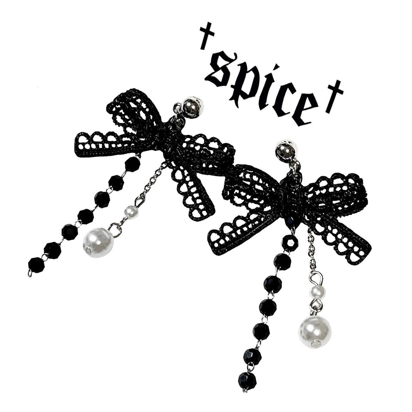 【レースリボンの揺ら揺らパールのピアス イヤリング。】