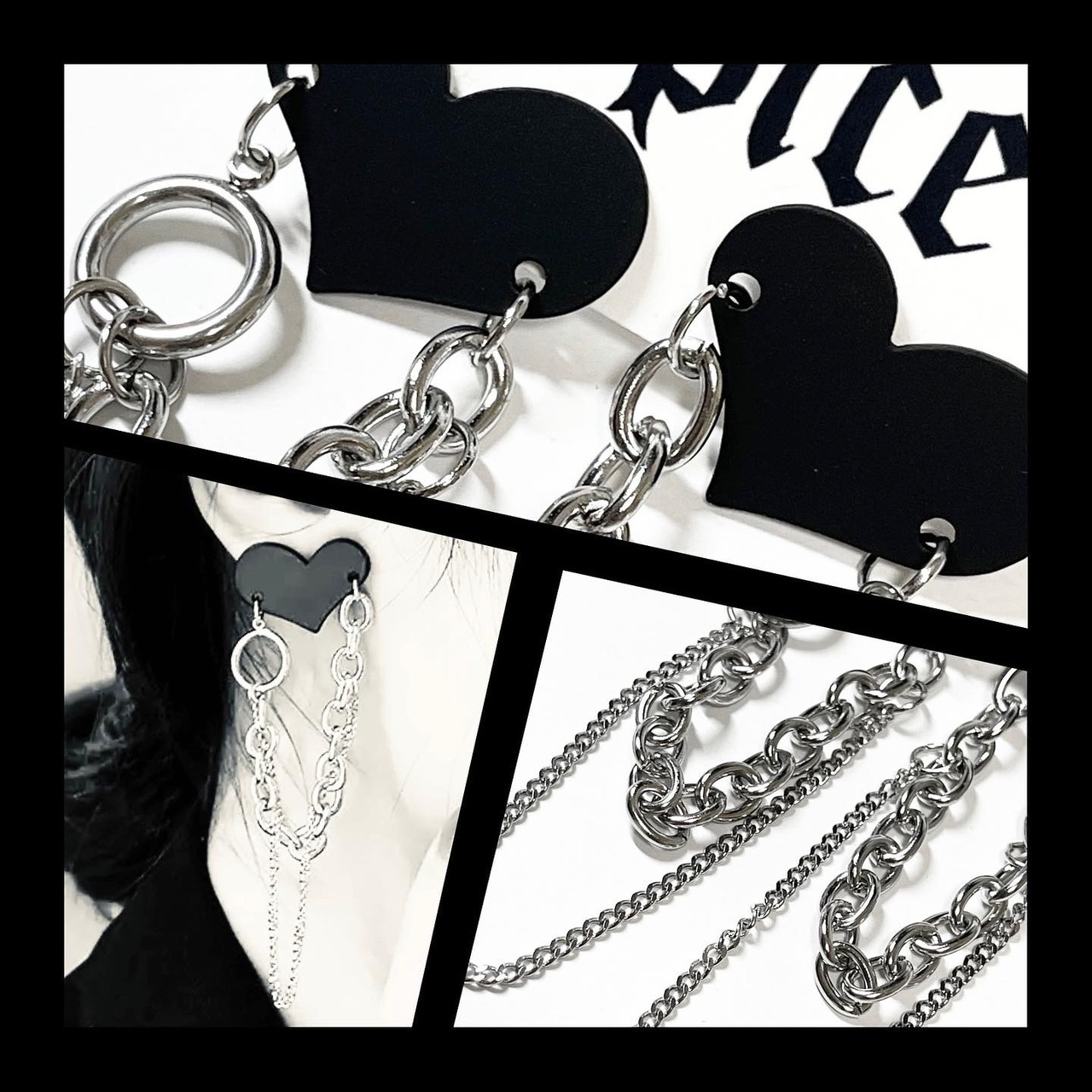 再販【ブラックハートの超じゃらじゃらなピアス。】