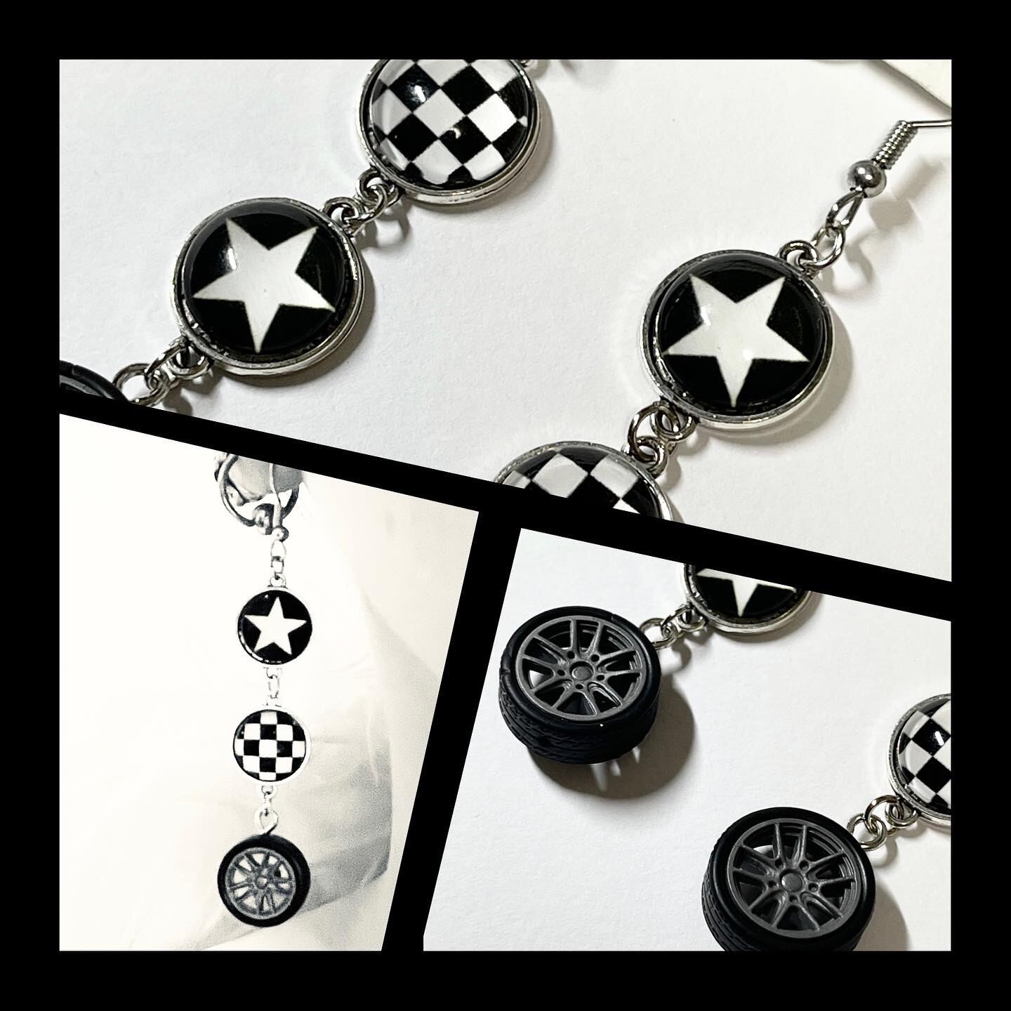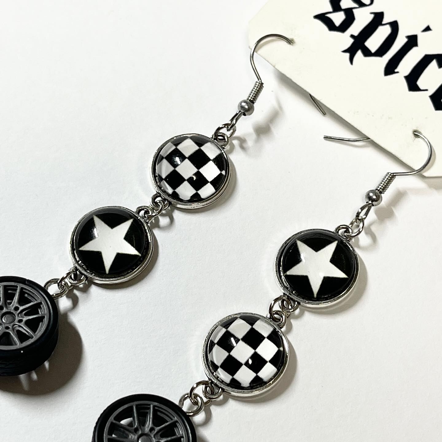 再販【チェッカーなタイヤのピアス イヤリング。】