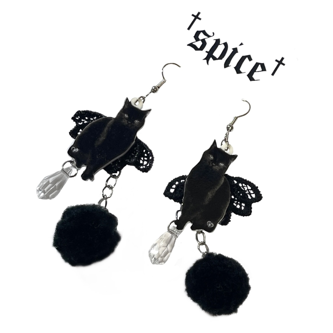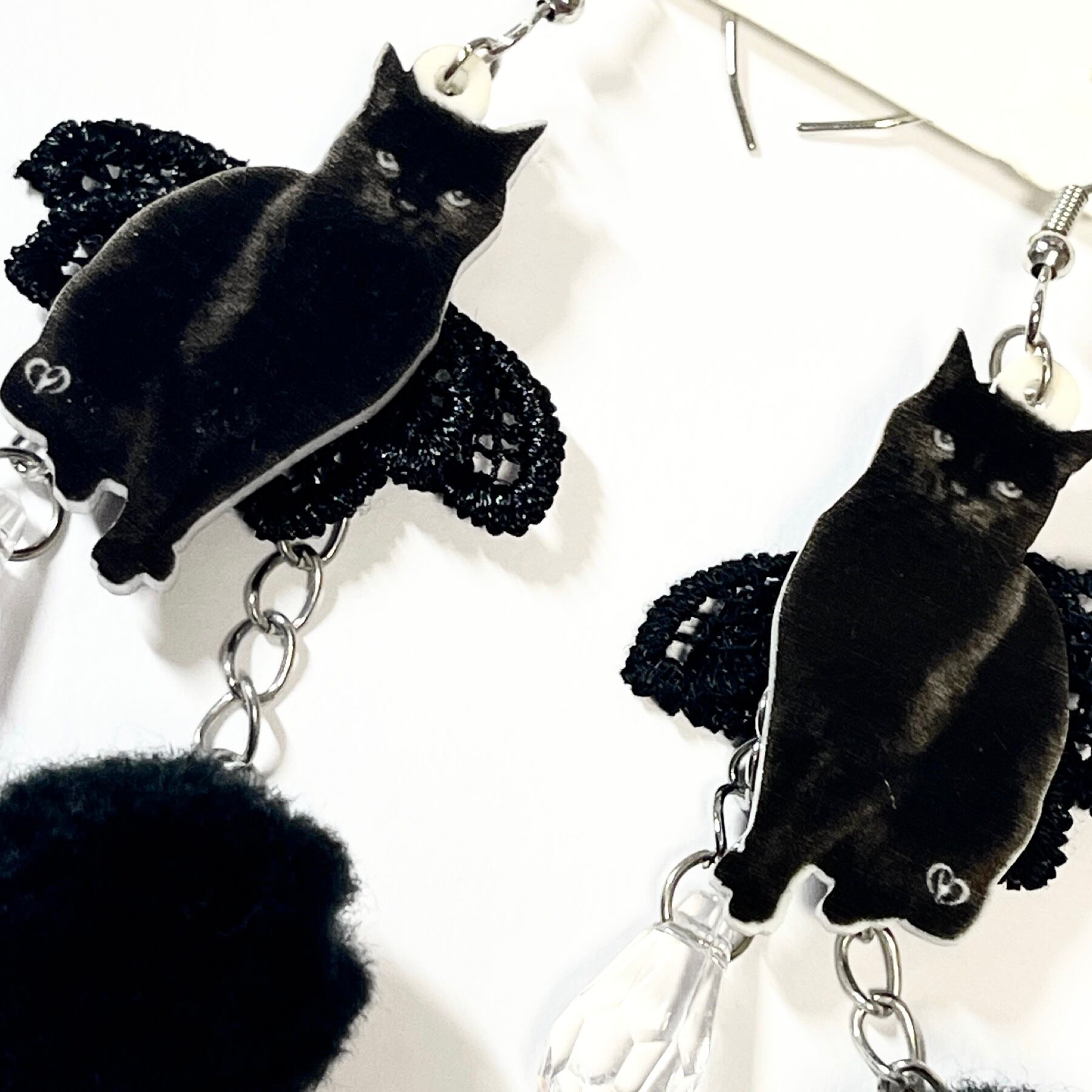 【真夜中の黒猫と揺ら揺らなピアス イヤリング。】